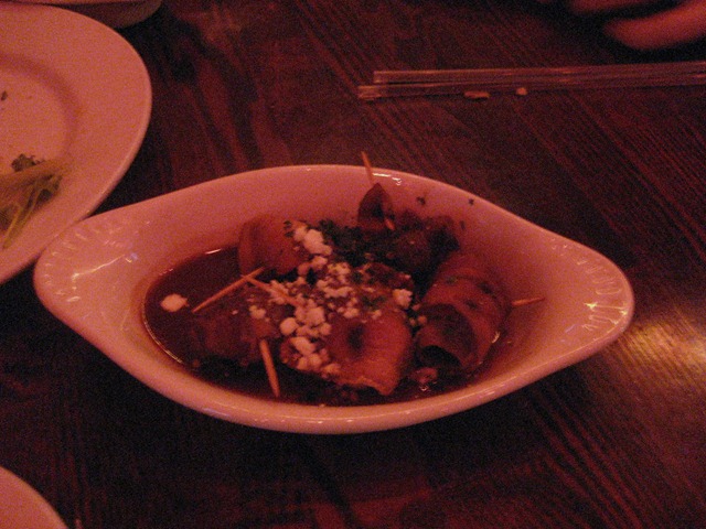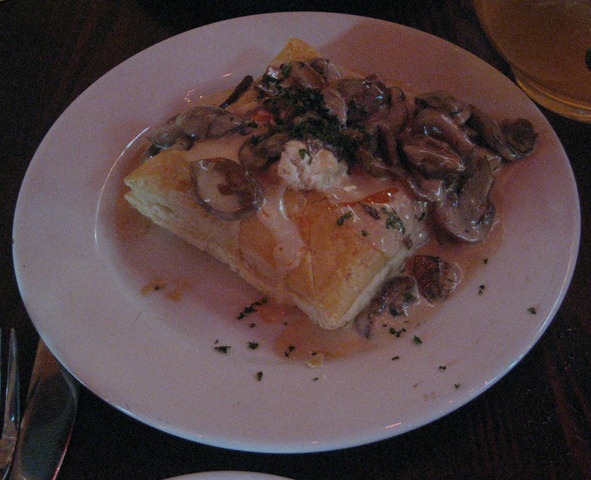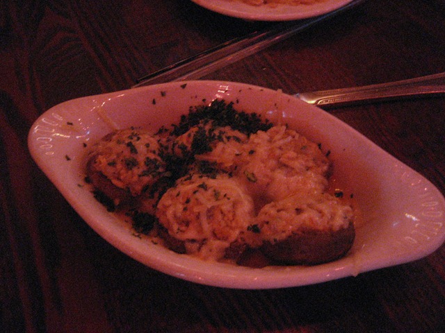 Something we actually ordered arrived next: chicken and chorizo stuffed mushrooms.