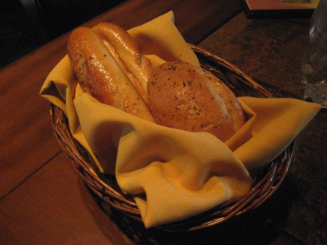 The menu had lots of classic Italian options such as lasagna, fettuccini alfredo, and chicken, eggplant, and veal parmigiana (not all together of course). While we waited for our meal, we tried out the bread basket. The rolls were a bit too dry for our taste so we waited for our appetizer instead.