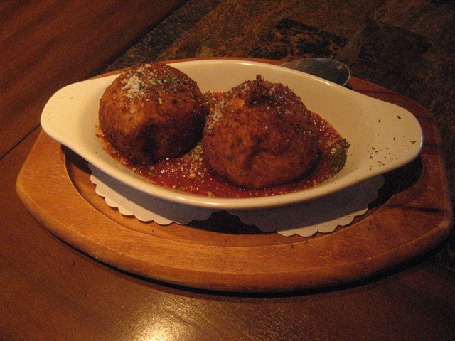 We were interested in ordering the chicken pecorino rolls as our appetizer but they were out (perhaps next time, though our waitress also highly recommended the stuffed mushrooms). Instead, we ordered the Arancini Di Riso which are lightly fried rice/risotto balls with a marinara sauce. They were good.