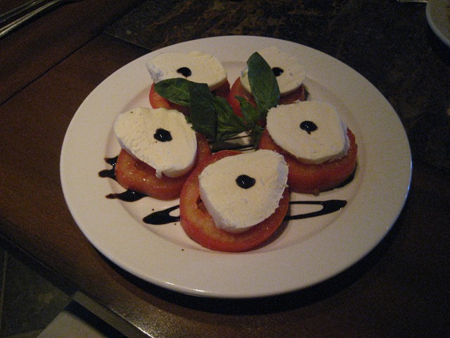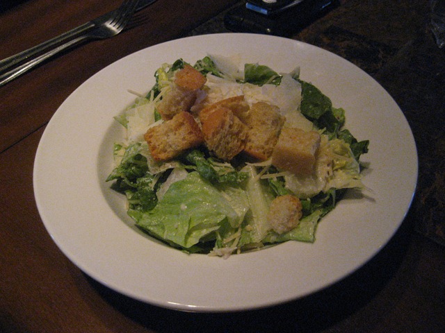 The Husband and I each decided to order a salad and he went with the Caprese Salad – as expected, slices of tomatoes, topped with mozzarella, balsamic vinegar and basil. The tomatoes were cold and didn’t have much flavor (the latter to be expected due to the season), so it was a bit of a let down for the Husband.