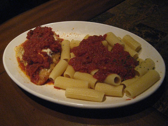 Our entrees made up for the the lackluster starters though! The Husband ordered the Chicken Parmigiana which came with a side of rigatoni. He really enjoyed this. While it doesn’t look large on the plate, it was a very reasonable size for a single serving and we had some leftover rigatoni to take home. The chicken was moist and it wasn’t too fried (which some times happens at italian restaurants).