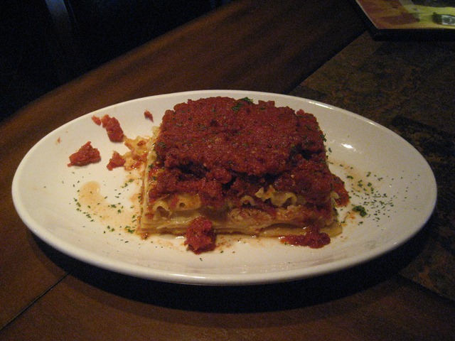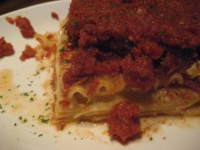 I asked the waitress whether she would recommend the lasagna or the baked rigatoni (I was debating between the two). She recommended the lasagna and adding italian sausage (her favorite), but I opted to go with the cheese only version. It was also quite good! Lots of great layers of pasta, flavorful cheeses and tomato sauce.