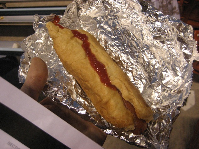 I went with my go-to baseball food – a hot dog with ketchup. Yum ![]()