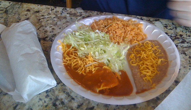 The Husband ordered the Beef burrito & cheese enchilada combination plate (but saved the burrito for later).