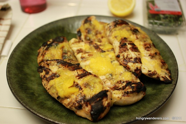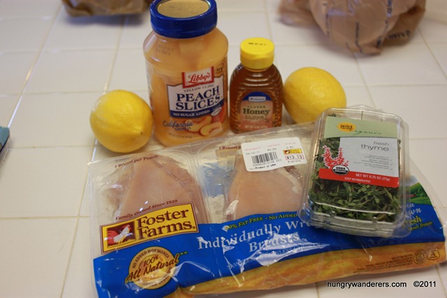 I didn’t use any measurements making a marinade but combined the peaches, the juice of one lemon (I wish I had used some zest as well), and about half the bottle of honey. (I ended up not using the thyme in the picture above). I threw the chicken breasts in some tupperware with the marinade for a few hours and the Husband grilled it up on the gas grill. It turned out quite well! And it went very well with the IPA! If you’ve been reading the blog a while, you might realize that IPAs are my least favorite beer. The peach flavors in this dish brought out the citrus tones of the IPA which melded so well together.