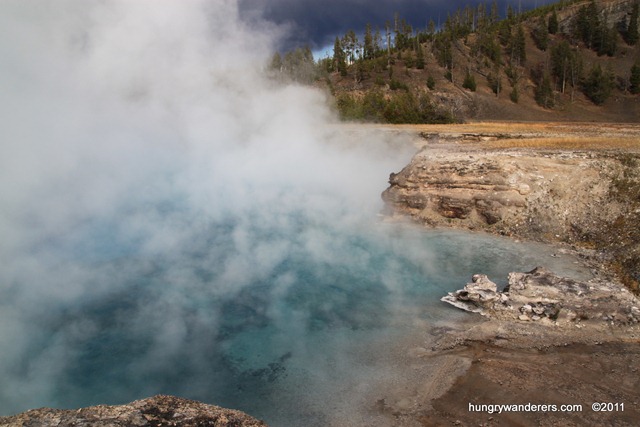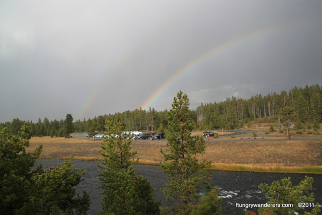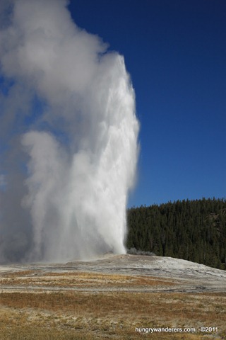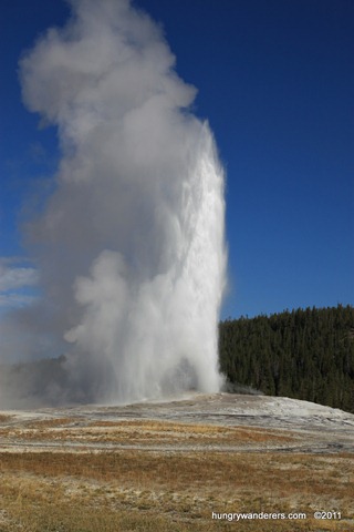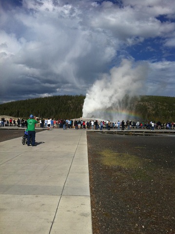 I split off from the group about halfway through and watched Old Faithful again, this time catching a rainbow in the mist.