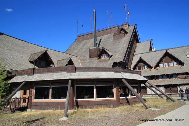 After the eruption, we headed over to the Old Faithful Inn to explore and have some lunch in the restaurant. The Inn was built at the turn of the century and is the largest log hotel in the world (and possibly the largest log building).