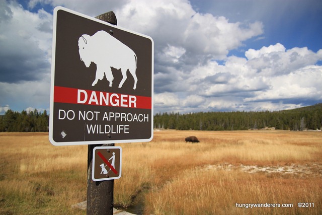 First, there was a bison feeding in the pasture, coincidentally next to the DANGER! sign ![]()