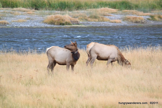 Throughout our drive, when we saw a number of cars pulled over, we knew there was some wildlife hanging out nearby. On our drive to the parks, we saw elk and bison. Here’s an elk hanging out in the tall grass (a female elk and baby elk were not too far away as well). Thanks to Yellowstone or Teton’s newsletter, we learned that elk can dive up to 18 feet to get food in the water!